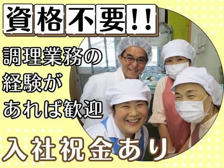 資格 【必須条件】 調理業務経験がある方 ―――――――――――――― ◇経験者歓迎・ブランクOK ★フリーター歓迎★主婦・主夫歓迎 ★ブランク復帰応援! ★年齢不問!ミドル活躍中! ★20代~60代の幅広い世代が活躍中! <こんな方にピッタリ!> ○調理員業務や調理補助業務経験がある方 ○病院給食や学校給食などの給食調理経験がある方 ○レストラン・カフェなど厨房での調理経験がある方 ○調理師免許・栄養士資格をお持ちの方 ○飲食店のキッチンスタッフ・洗い場スタッフ経験者 ○料理をすることや盛付けに興味がある方 ○きれい好き・人を喜ばせることが好きな方 ○家事の合間に趣味や習い事でクッキングスクールに通っている方 ○栄養バランスなどの健康面や彩りなどが良い料理作りが好きな方 50代や60代の中高年・ミドル、シニアも多数在籍中! 主婦パートや単発・短期アルバイトとして 飲食店で働いたことがあるスタッフも活躍しています! ∥∥∥∥∥∥∥∥∥∥∥∥∥∥∥∥∥∥∥∥ 近隣の他事業所では 中高年やシニア世代の方も活躍中です! ハローワークでお仕事をお探しの方も お気軽にお問い合わせください