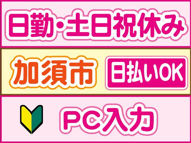 人気のPC入力/未経験OK 日勤・時間選択OK・土日祝休み 日払いOK・履歴書不要、空調完備