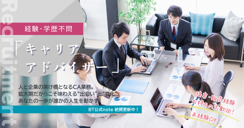 求めている人材 ~業務未経験歓迎~ 日々初対面の方と話しますので、電話や対面での会話に慣れている方に向いています。 【以下の経験のある方は優遇いたします】 ・求人広告営業職などの対法人のテレアポ経験のある方 ・業界問わず営業職の経験があり、実績を上げた経験のある方 ・とにかく人と関わることが好きな方