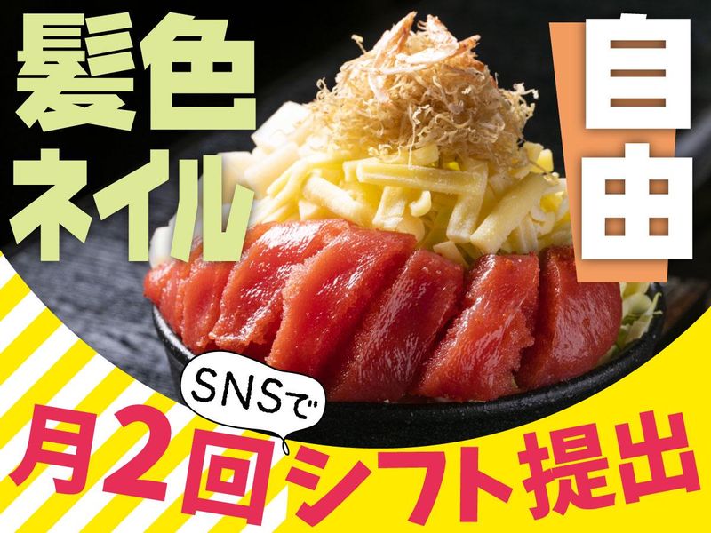 シフト制 勤務時間詳細 ※22時以降は時給1,625円以上・日払いOK 【11:00〜23:00の間で週1日〜/3h〜OK!】 SNSを使って、毎月2回シフトを提出していただきます。 無理なく、プライベートと両立ができるようサポートしますのでご安心ください。 事前にご相談いただければ、シフトの変更も柔軟に対応いたします◎ シフトに関してご要望がございましたらお気軽にご相談ください!