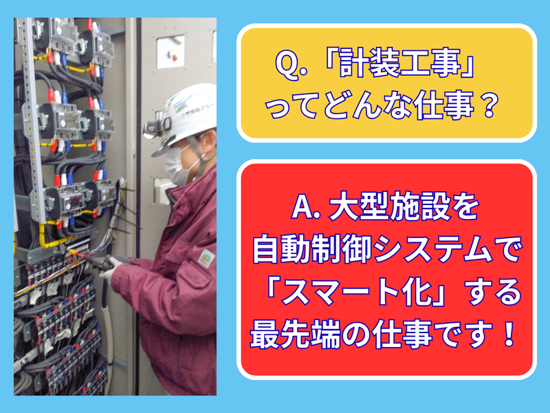 求めている人材 【歓迎条件】 - - - - - - - ⭐未経験歓迎! ⭐何かしらの電気工事・設備工事の経験がある方 ⭐計装工事経験者歓迎 \こんな方が活躍中/ - - - - - - - - - - - - - - ☑協調性を持って、周りと楽しく仕事ができる方 ☑知識習得や技術向上に意欲的な方 ☑30代、40代を中心に活躍中! \こんな方におすすめ/ - - - - - - - - - - - - - - ☑今の経験を活かして、さらに専門性を高めたい方 ☑安定した環境で、着実にキャリアアップしたい方 ☑チームで協力しながら、大きな仕事を成し遂げたい方