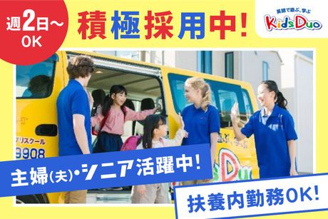 仕事内容 仕事内容 ☆学童の送迎バスのサポート ☆英語スキルなどは不問です ☆平日2.5時間のみで家庭と両立 ☆ミドル世代が活躍中! ~お仕事詳細~ 子供の成長を応援し、 地域とつながるお仕事♪ *英語を学べる学童保育 <Kids Duo> 子供達を自宅付近・ スクール・学校へ送迎します 添乗員のお仕事は 送迎バスでのサポート業務がメイン *送迎タイムを子供たちが 楽しく過ごせる様に お話ししたり、乗降時の シートベルト等の安全確認 など *英語の学童保育ですが 英語が話せなくても問題ナシ! *近所に住んでいる方、 中央区・博多区・城南区に 住んでいる方も活躍中 子供たちのキラキラした笑顔に 癒されること間違いなしですよ! 家庭との両立ラクラク♪ お仕事は平日の午後短時間だけ! 土日・祝日の勤務はありません。 Wワークや扶養内勤務をご希望の方におすすめ! 家庭優先で、 Wワーク・副業として、 定年後のお小遣い稼ぎに etc. スタッフはそれぞれの都合・希望に合わせて シフトを組んで働いています。 男女ともに幅広く活躍中! アルバイトスタッフとして 30代/40代/50代/60代以上の 主婦さんやミドル・シニア世代が 多数活躍しています。 子どもが好きな方はもちろん、 英語に関わる仕事がしたい方もぜひ! 久しぶりの仕事復帰にもちょうど良く、 ブランク明けの方もムリなくお仕事を 再開することができますよ。