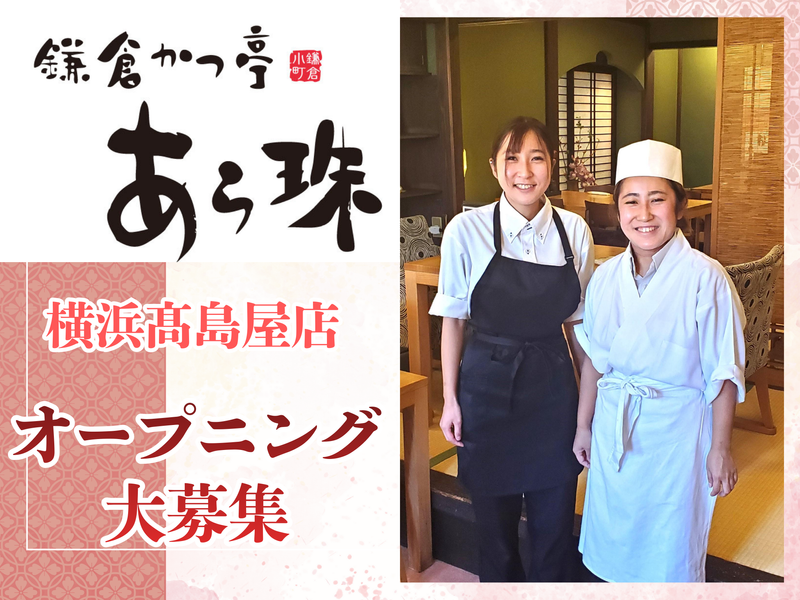 仕事内容 \\⭐ 12月 NEW OPEN! ⭐// ⭐オープニングスタッフ大募集⭐ 今月オープンしたばかりの新店舗で 心機一転!気持ちよく働き始めませんか? ✅月給25万円~!キャリアアップも応援! ✅飲食店勤務経験者は優遇! ✅飲食店勤務未経験OK ✅複数店舗経営法人!業績好調で安定性も◎ ー 「横浜高島屋」内にある とんかつ屋「鎌倉 かつ亭あら珠」にて キッチンスタッフを大募集! ー 【お仕事内容】 <仕事内容> ◆ キッチン業務 ・とんかつ、揚げ物の仕込み・調理 ・食材の下処理(肉のカット、衣付けなど) ・盛り付け、提供準備 など ※経験やスキルに応じて、 揚げ場・仕込み担当・盛り付けなどの 専門ポジションをお任せしていきます。 ◆ その他店舗業務 ・スタッフの育成、フォロー ・食材の発注、在庫管理 ・開店・閉店準備 など ※将来的には、 季節メニューや新メニューの考案にも携われます。 飲食店での勤務経験がない方、経験の浅い方も歓迎! 包丁の使い方や揚げ方など、基礎から丁寧に指導するので安心です◎ ゆくゆくは副店長・店長など、 キャリアアップできるポジションも豊富。 あなたの得意分野を活かしながら成長できます。 ✨ 働きやすさの理由はココ! ✨ ◆未経験でも安心して始められる◆ 飲食業界が初めての方も大歓迎! 調理や接客は基本から丁寧にレクチャーします。 慣れるまでは先輩スタッフや店長がしっかりサポートするので、 「分からない」「不安…」もすぐに解消できる環境です。 ファミレス・カフェ・居酒屋、 コンビニ・スーパーでの経験も活かせます◎ ◆無理なく続けられる働き方◆ 月8日休み+夏季・冬季休暇あり。 有給休暇や産休・育休制度も整っており、 仕事とプライベートを両立しやすい環境です。 勤務時間はシフト制なので、 ライフスタイルに合わせた相談もOK! ◆福利厚生&成長サポートが充実◆ 食事補助あり(月実費3,500円)で毎日の食事も安心♪ さらに、店舗で使える20%OFF割引券を毎月支給! 資格取得支援(費用全額会社負担)や 海外研修・社員旅行など、 楽しみながらスキルアップできる制度も揃っています。 ー <創業50年を越えた老舗企業> 鎌倉・湘南・丸の内・横浜・千葉などに多彩なブランドを展開! リストランテ・トラットリア・カフェ・和食・トンカツ・鉄板焼き・ハンバーグ店・うなぎ店など… コンセプトの違う様々なお店を運営しています。 会社全体で、社員100名・アルバイト350名を超える規模の50年以上の歴史ある会社です。 当社が展開する店舗の魅力は、温かくアットホームな雰囲気だということ。 一人ひとりの個性を大切にしながら、全員が安心して続けられる環境を整備しています。 人柄を重視した採用を行っているため、明るくフレンドリーなスタッフが揃っています。