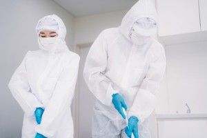 医療用器具の消毒と清掃スタッフ