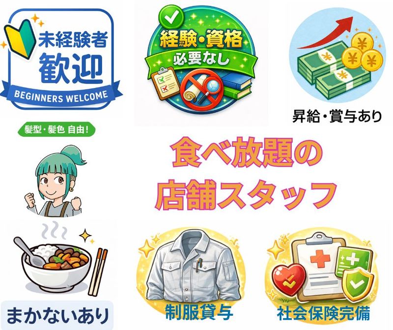 メッセージ ◆メリット◆ ☆未経験から店長を目指せる 調理や接客の基礎から学べる 研修制度があり未経験でも安心! ■ 髪型・髪色自由 自分らしいスタイルで勤務可! ■ 社宅完備で住まいのサポートあり 遠方からの応募や 一人暮らしを始めたい方にも安心! ■ まかない付き 飲食店ならではの 美味しい食事補助あり! ■ キャリアアップが早い 育成プログラムがあり 1年で主任・3年で店長など 早期昇進も可能! ■ 月給25万円以上の安定収入 未経験からでも安定した給与で 働くことができる! ■ 車通勤OK 駐車場完備で通勤しやすい! ■ 店舗運営のスキルが身につく 売上管理・人材育成・メニュー開発など 経営に近い経験ができる! ============ ■勤務地 本格焼肉!ヴァイキング 宇部店 山口県宇部市居能町3丁目1971-1 ・JR居能駅徒歩6分 ・車通勤OK(駐車場あり) 未経験からでも月給25万円~髪型・髪色自由♪社宅完備で住まいサポート☆まかない付き◎ 職業紹介事業(33-ユ-300208) 労働者派遣事業(派33-300443)