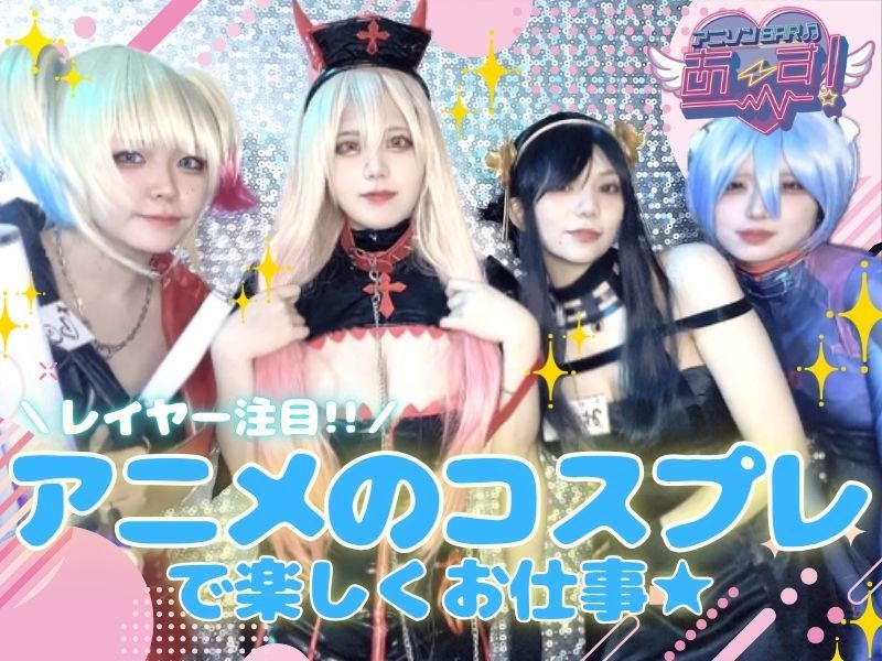 仕事内容 \ アニソンカラオケBarの / \ コスプレイヤーさん募集 / \ 非日常×かわいいコスプレ / 「推しのコスプレをしてみたい」 「可愛い衣装を着て働きたい」 そんな気持ちがあればOK! ◆お仕事はとってもシンプル◆ カウンター越しにお客様とおしゃべりしたり、簡単なドリンクを作ったりするだけ! 接客もカウンター越しなので安心◎ お客様の隣に座ることはありません! さらに… ◇お酒は飲めなくてOK(無理な提供ナシ) ◇連絡先交換やビラ配りなど一切ナシ ◇外に立っての呼び込みなども一切ありません! ◇クオリティが高い完全無料の貸出衣装あり! ◇お友達同士の応募もOK! ◇SNS・配信活動が好きな方にもピッタリ ◇アニメやアイドルの深い知識は必要なし! お気に入りのキャラクターになりきって、非日常を楽しみながらお仕事できます! 「アイドルになってみたい」 「カラオケが大好き!」 「アニメ・コスプレに興味がある!」 そんな方にオススメ◎ 頑張って盛り上げなきゃ……なんてプレッシャーは必要なし! 遊びの延長くらいの気持ちで大丈夫です。 「ナイトワーク初めてで不安…」という方もご安心を! 全国展開のグループが優良な運営してるので安心して働けます! ◇終電後の送り無料! ◇自由シフト ◇給与の未払い等も一切なし! ◇給与前借りあり!(稼働分日払いOK) ◇制服はアニメのコスプレなら何でもOK! ◇先輩キャストや店長が丁寧にサポートします◎ まずは体験入店からでもOK! お気軽にご相談ください。 \ 運営体制も万全です! / お客様にも安心してご来店いただけるよう、運営体制は万全。 ◇すべて明朗会計でトラブルの心配なし ◇公安認可を受けた健全営業遵守しております