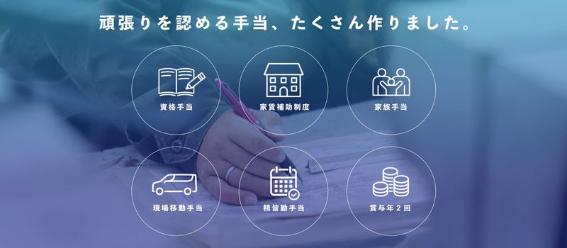 アピールポイント ▼▽「夏」も快適に働ける工夫▽▼ 「現場仕事は暑さが不安…」という方もご安心ください! スタッフの安全と健康を第一に考え、昨夏は全スタッフに以下を支給しました。 ・空調服 ・水筒 ・冷感シャツ 無理な働き方はさせません。安全&気持ちよく作業できる環境を整えています!