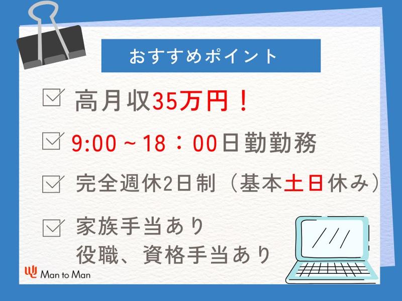 男性・女性ともに在籍・活躍中! 日勤/完全土日休み
