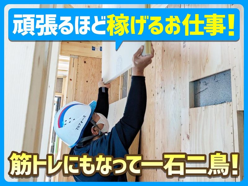 求めている人材 ・普通自動車免許(AT限定可) ・経験不問、未経験歓迎 ・学歴不問 ――――――― 【このような方は大歓迎!】 ◆体を動かして働きたい方 ◆筋トレしたい方 ◆しっかり待遇が整っている職場で働きたい方 ◆引っ越しバイトや建設現場、構内作業、工場作業員、製造スタッフ、倉庫作業員などからの転職も大歓迎! ============= ◆採用担当よりメッセージ ============= 当営業所では20代・30代・40代の方が活躍しております。 その理由は、待遇、収入面で満足してくれているからだと思います。 業務上、勤務時間に変動が発生してしまいますが、しっかりと頑張った分を給与として還元しております。 まるでジムに通ってトレーニングする感覚で、健康を維持しながら働けるのもポイント! その上、ガッツリ給料を稼ぐことが出来るのは魅力的ですよね! 当営業所の社員は、皆教え好きでフレンドリーなので、すぐに馴染む事が出来ますよ! 最初はボード2枚など持てる量から始めて、少しずつ慣らせていきましょう。