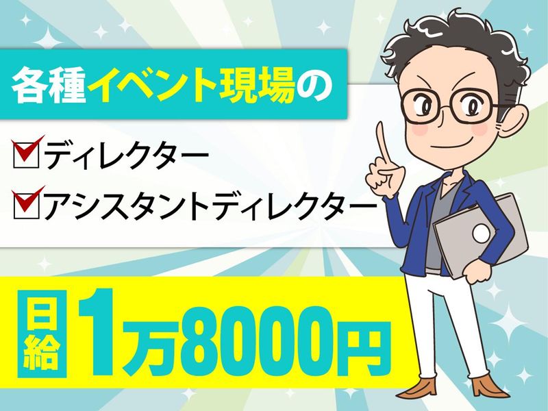 仕事内容 展示会やセミナー、ゲームイベント等 様々なイベント等での現場ディレクターの お仕事をお任せします! < 仕事内容 > 各イベントの運営や現場スタッフ の管理をお任せします。 ・スタッフ管理 ・指示出し ・休憩回し ・勤怠管理 など ―――――――――――――――――― < 当社を少しだけご紹介 > あらゆる角度でイベント現場をサポート! 当社は、イベント、キャンペーン、展示会、 セミナーなどの企画制作、運営業務、 各種、事務局運営・キャスティング業務 などを行っております。 ―――――――――――――――――――