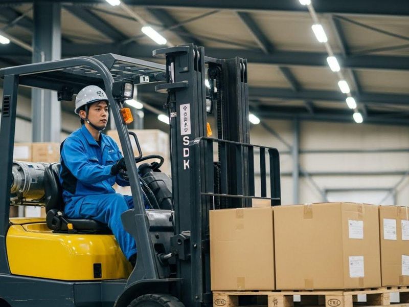 ペットボトル製造工場でのフォークリフト作業