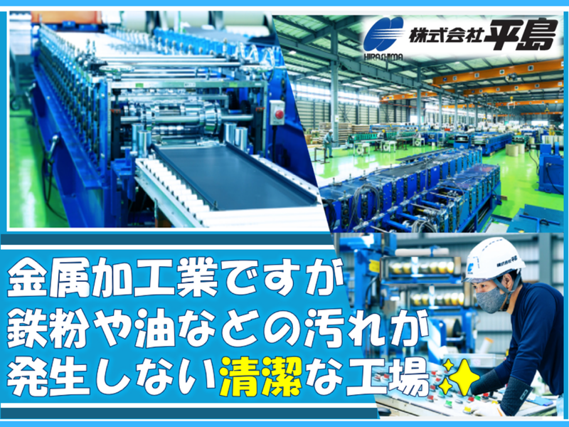 仕事内容 \新工場!完成間近!正社員を増員✨/ 資格取得もキャリアUPも“会社負担”でしっかり応援! 日勤のみで、安定した働き方と安定収入を叶える◎ ✨……………………………………✨ 創業100年以上。金属屋根・外壁メーカーとして、地域の建築を支えてきた老舗企業です。 「未経験から長く働ける職場」「安定×成長」を両立できる環境で、新しい仲間を募集します! ~仕事内容~ 住宅や学校、工場などに使われる金属屋根・外壁材を製造します。 注文内容に合わせ、天井クレーンで材料をセットし、ボタン操作で成型。 検査・梱包・出荷までをチームで分担して行います。 ✅まずは補助業務からスタート! 先輩のOJTで基礎を学び、慣れてきたら機械オペレーターや出荷作業へステップUP。 ✅天井クレーンやフォークリフトの操作は資格取得後に挑戦! 資格取得費用は全額会社負担です。 ~1日の流れ(例)~~ 08:15 ラジオ体操・清掃 08:30 朝礼・チーム打合せ 09:00 製造開始(2〜3名のチーム制) 10:00 小休憩 12:00 お昼休憩(食堂・マイカー・外食OK!個室休憩室あり) 15:00 小休憩 17:30 片付け・清掃 18:00 退社 \社員インタビュー♪/ 【勤続4年/36歳】 「未経験から始めましたが、資格取得やスキルアップの手応えがやりがいに!」 【勤続3年/42歳】 「交代勤務なし&転勤なし。地元で腰を据えて働けるのが魅力。」 【勤続4年/44歳・女性】 「人間関係のストレスがなく、黙々と作業に集中できるのが心地いい。」 【勤続5年/50歳】 「ノー残業デーがあり、家庭と両立しやすい!会社全体で働きやすさを重視しています。」 【勤続3年/40歳】 「自分が作った製品が街の建物に使われているのを見ると、誇らしくなります。」 \AIによるこの求人の魅力/ ✨ 未経験でも安心 基礎から丁寧に指導。技術ゼロから“職人”へ育てます。 ✨ 会社負担で資格取得OK! 天井クレーン・玉掛け・フォークリフト・MT免許など、すべて費用は会社が負担します。 ✨ キャリアアップ制度 現場で技を磨くもよし、リーダーや工場長を目指すもよし。希望と努力をしっかり評価! ✨ 働きやすい環境 日勤のみ・土日祝休み・年間休日114日。有給が取得し易い環境なので、実質の年間休日数は120日を超える人も♪ ✨ 給与UP制度あり! 2026年末までの入社者は、2030年までに年4.6%ずつ昇給決定!(3年継続) ✨ 新制度「オフィスで野菜」導入✨ 健康的でおいしいお惣菜やサラダが100円から購入可能!社員の健康を応援します♪ ~こんな方におすすめ!~ ・ 手に職をつけたい ・ モノづくりが好き ・ 安定した環境で長く働きたい ・ チームで支え合える職場がいい