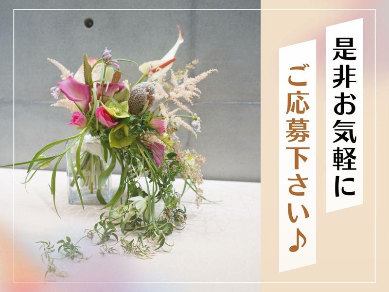 求めている人材 【✨未経験者歓迎✨】 花に興味がある、 フラワーデザインを仕事にしたい方歓迎♪ \ ✨こんな方は歓迎です✨ / ✧ウエディングフラワーの └アレンジメント経験のある方優遇! ✧組織のリーダーとしてマネジメントできる方 ✧5年~10年後に経営交代も可能な、 └やる気のある方も大歓迎です ⛳30代スタッフ中心に活躍中! ✔未経験OK ✔経験者歓迎 ✔学歴不問 ✔主婦・主夫歓迎 ✔第二新卒歓迎 ✔ブランクOK ✔女性活躍中 ✔ミドル活躍中 ✔20代・30代・40代活躍中 ぜひお気軽にご応募ください!