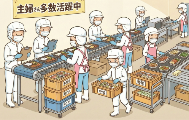 食品工場内の調理補助・仕分けスタッフ