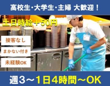仕事内容 回転ずしなごやか亭の清掃業務を お願いします。 【お仕事内容】 ◆調理器具・食器の洗浄 ◆床や作業台の清掃作業 など ⭐閉店準備に伴う、キッチン内の清掃中心。 ⭐難しい仕事や、複雑な作業は一切なし! ⭐補助業務などできることからスタート! 【働くメリット】 ✅1.高時給でガッツリ稼げる! ・時給1230円~! ・土日は時給+50円! ・できることが増えれば更に昇給も! ✅2.働きやすさ抜群 ・週3日~1日3時間~OK ・シフトの融通も抜群! →あなたの希望を教えて下さい! ・WワークOK! ✅3.未経験・ブランクのある方も安心! ・マニュアル完備 ・はじめは先輩がついて丁寧に指導! ほとんどの方が未経験スタート☆ 安心して働けるバイトです! ✅4.その他のメリット ・30種類のおいしい賄いあり!(毎日) ・仲の良さには自信あり! ・学生~主婦さんまで幅広い方が活躍中! 人目につかないお仕事なので 作業に黙々取り組むことが好きな方や コツコツ作業が得意な方も必見! WワークもOKです◎
