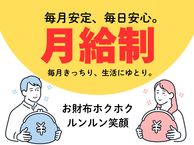 アピールポイント: GWなど大型連休も安心の月給制!! 人気の土日休み×日勤のお仕事! 年1回の昇給で給与UPも目指せます! * 残業少なめ!17時台に退勤OK * 家賃半額補助あり * 引っ越し費用最大5万補助あり * 食堂あり(1食300円程度) * 正社員募集 * バス停から徒歩5分 * 車・バイク・自転車通勤OK * 交通費規定支給 * 履歴書不要 * WEB面接1回 ===前払い制度あり=== 日払いも、週払いもOKです! 今月ピンチ…そんな時に超便利! スマホのアプリでサクッと申請! \お気軽にご相談ください!/