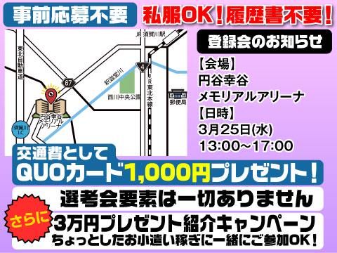 選考プロセス 【入社時期はお気軽にご相談ください!】 雪が解けてから、1ヶ月後、春先や3ヶ月後 またはそれ以上の就業を予定されている方も大歓迎です! 就業中の方もお気軽にご相談ください! ▼ 応募の流れ ▼ 【WEB応募】 応募後は「024」で始まる番号からお電話します。 ※18時まで→当日中、18時以降→翌日9時以降 【面接】 Web・対面・出張を選べて最短当日実施OK! 対面参加でQUOカード1000円分プレゼント♪ 【内定】最短5営業日! ■私服OK&履歴書不要の登録会を実施■ ・ビックパレットふくしま ・円谷幸谷メモリアルアリーナ ※登録会は事前のお申し込み不要です。 お仕事に少しでも興味があればお気軽にご参加ください!