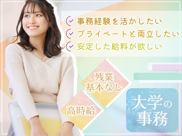 応募資格 ❖未経験OK!大学での勤務経験がない方やブランクのある方も大歓迎です! ※30~40代の子育てがひと段落した主婦(夫)さんも活躍中✧ ❖周囲とのコミュニケーションを大切にできる方 Excel・WordなどPCの基本的な操作ができる方 Word:簡単な文書作成や既存資料の修正ができるレベル Excel:グラフ作成やSUM関数ができるレベル \ こんな方にもぴったり! / ・仕事復帰や社会復帰を考えている主婦(夫)さん ・事務経験や営業アシスタント経験を活かして働きたい方 ・家庭やプライベートを両立させて働きたい方 ・WordやExcelスキル、データ入力などパソコンスキルを活かしたい方