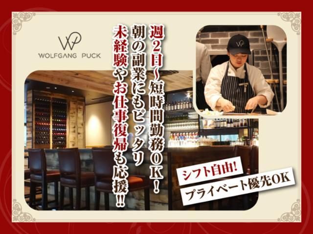 仕事情報 ● 仕事内容 \大手ならではの充実の待遇/ ◆モーニングは時給150円UP! ◆給与は1分単位で支給! ◆食事補助(規定有) ◆働いた分50%(前給制度)あり! ◆交通費支給◆週2日~OK <働きやすい環境整ってます!> 「Wワークで無理なく働きたい」 「フルタイムでしっかり稼ぎたい」といった相談OK! ライフスタイルに合わせて働けます◎ お仕事内容詳細 ◎仕込み・準備 厳選食材を使用し、ソースから丁寧に調理。 ◎調理 名物の釜焼きピザやステーキ、パスタなど幅広く担当。 ◎盛り付け アートのような美しさを意識し、一皿ずつ仕上げます。 ◎在庫管理・清掃 衛生管理を徹底し、プロフェッショナルな厨房環境を維持します。 ※状況に応じて他業務もお任せする場合あり 飲食店経験者も大歓迎 これまでの飲食店での経験を活かして、 新しい職場で輝きたい方、大歓迎です! ★下記、いずれかの経験をお持ちの方は即戦力★ 居酒屋、レストラン、バル、BAR、カフェ、寿司、 回転寿司、ベーカリー、うどん、弁当、ピザ、スイーツ とんかつ、カレー、定食屋、蕎麦屋 頑張りはしっかり評価 給与は1分単位で支給! 働いた分はしっかり給与に還元◎ また、前給制度もあるので、 「今月はお財布がピンチ…」なんて方も安心です★ ウルフギャングパックとは 外食大手「コロワイドグループ」が展開する、 料理界のレジェンド、ウルフギャング氏 プロデュースによる本格カリフォルニアレストラン。 産地指定の素材を使った創作料理をお楽しみいただけます。 グループの強みを活かした万全のバックアップ体制により、 すべてのお客様に最高のおもてなしと安心をお届けします。