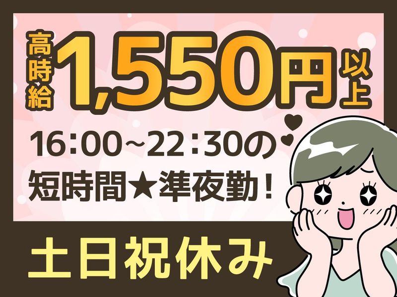 固定時間制 勤務時間詳細 【準夜勤専従】 16:00~22:30 ■実働6時間/休憩30分 ■残業なし