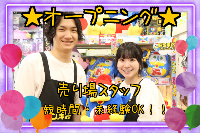 アピールメッセージ 商売の楽しさ味わってみる?ドンキは働く人のやる気度合いによって、裁量権が違うんです! 2026年4月OPEN(予定)!バイトだって自分たちで仕入れて、ディスプレイして、売る!任されるおもしろさを味わえるのがドンキ!