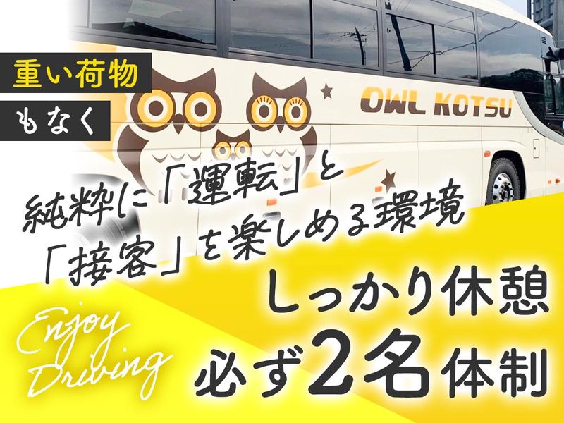 仕事内容 \ オープニングスタッフ募集 / 事業拡大につき✨新拠点OPEN✨ =============== ★未経験でも月収46万〜高収入! ★普通免許さえあれば未経験OK ★頼れるベテランとツーマン運行 ================ 1人で眠気と戦いながらハンドルを握る日々。 「孤独な戦い」は、終わりにしませんか? \重い荷物も、孤独な長時間運転もナシ/ □給料はいいけど、そろそろ体がキツい □一人の運転は、何かあった時に不安 □上司が高圧的で、出勤がゆううつ …もしそんな悩みを抱えているなら 少しだけ話を聞いてください。 私たちは 社員の幸せを本気で考えるバス会社です。 〜〜〜〜〜〜〜〜〜〜〜〜〜〜〜〜 ↓あなたが得られる「3つの安心」↓ 〜〜〜〜〜〜〜〜〜〜〜〜〜〜〜〜 ①孤独からの解放|頼れるツーマン運行 ━━━━━━━━━━━━━━━━━━ もう、たった一人で眠気やプレッシャーと戦う必要はありません。 私たちのバスは、必ず2名体制。「2.5時間ごとに運転交代」のルールがあるため、休憩もしっかり取れます。 ② 肉体疲労からの解放|運転だけに集中 ━━━━━━━━━━━━━━━━━━ 配送ドライバーのような「手積み・手降ろし」は一切ありません。扱うのは「お客様の命」という大切なものですが、体への負担は激減します。 ③ 悩みからの解放| 「人は宝」の社風 ━━━━━━━━━━━━━━━━━━ 「どんな有名企業より、人間関係に悩まない職場がいい」。当社社員の言葉です。「ココなら定年まで続けられる」と話すドライバーも多いんですよ。 _/ _/ _/ _/ _/ _/ ✧カジュアル面談OK✧ 少しでも気になったら… 【応募先へ進む】をタップ! _/ _/ _/ _/ _/ _/ ⭐バス経験ナシでも、高収入スタート⭐ ================== 「免許はあるけど、バスは初めて…」 そんなあなたも大歓迎します! ✅月収50万円超えも可能 ✅座学・実車研修が充実 ✅資格取得支援あり(大型二種ほか) 活躍中のベテランたちも、最初は未経験でした。あなたの運転技術があれば、コツはすぐに掴めます。 <具体的な業務> 大阪ー東京・千葉間の夜行バス乗務 └大阪・千葉の両方に仮眠所を完備 └固定ルートなので、道を一度覚えれば安心 └乗車率93%!「次もアウルで」と選ばれる質の高いサービスが自慢 <先輩ドライバーの本音> 『毎日誰かの"人生の節目"に立ち会える。そんな仕事なかなかないでしょ』 『10年間、飽きたと思ったことは1日もないなあ』 荷物を運ぶ仕事も素晴らしいですが 「ありがとう」「快適だったよ」と感謝の言葉をもらえる喜びは、バスドライバーならではの特権です。 Q)向いているのはどんな人? 〜〜〜〜〜〜〜〜〜〜〜〜〜〜 A)クルマが好き、人が好きな方。特別なスキルはいりません。ものを大切に扱う、心を込めてクルマを手入れする…そんな”当たり前”こそ才能だと、私たちは考えています。 あなたの再出発、応援させてください✨ ━━━━━━━━━━━━━━━━━━ 面接というより"お互いを知る場"として まずは気軽にお話ししてみませんか? _/ _/ _/ _/ _/ _/ _/ *入社時期の相談OK* 少しでも気になったら… 【応募先へ進む】ボタンをタップ! _/ _/ _/ _/ _/ _/ _/