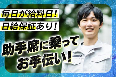 お仕事内容 〇ゴミ回収作業員  ̄ ̄ ̄ ̄ ̄ ̄ ̄ ̄ ̄ 集積所(ゴミ出し場所)を回って、家庭ゴミを回収して車に積込むお仕事です! 主な仕事の流れは下記です。 「ゴミ回収→積込→処理場へ運搬」 ※運搬中は車移動なので作業員さんプチ休憩✨ ※作業員さんは運転業務一切なし✨ 自分の足で歩いたり走ったりで移動することもありますが、慣れたら単純作業の魅力に気付けちゃいます! ※先輩スタッフと一緒に作業するため安心✨ ※やる気さえあれば誰でも簡単に始められます✨ ※更に慣れたらドライバーさんのフォローをお願い✨ <自分のコースが終了したら、、、> 作業終了して会社に戻り次第、帰宅OK! 勤務時間内であっても待機なしで帰宅OK ※日給保証なので超安定収入GET! 〇1日のスケジュール例  ̄ ̄ ̄ ̄ ̄ ̄ ̄ ̄ ̄ ̄ 06:00 出勤・点呼・アルコールチェック 08:00 ごみ回収作業(約3~4ルート) 11:30 昼休憩(コンビニなど) 12:30 ごみ回収作業(約2~3ルート) 14:30 作業終了次第、帰庫 →アルコールチェック →退勤✨ ※1ルート30分くらい! ※定時前に終わることが多め!