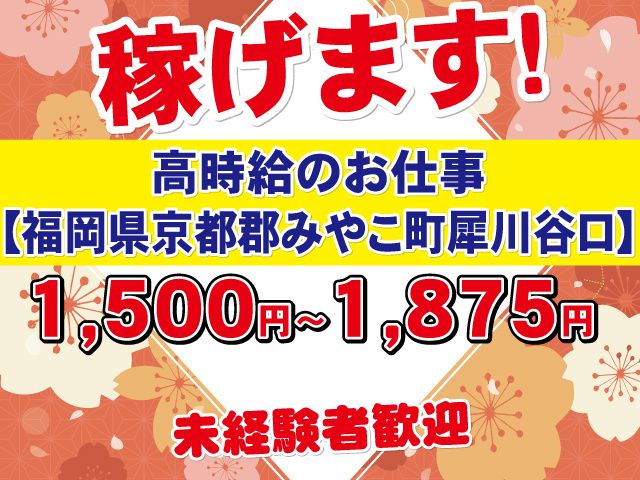 仕事内容 ◆新着‼︎ ◆新規レア求人‼︎◆派遣 【福岡県のお仕事】 人気の工場内のお仕事になります。 勤務地/福岡県京都郡みやこ町犀川谷口 ◆現地面接いたします! 男性活躍中‼ 未経験者大歓迎 テキパキ・モクモク作業 \アピールポイント/ ━━V━━━━━━━━━━━━━ ・高時給1,500円~1,875円 しかも前払いOK! ・前払い対応します。 突然の出費にも対応可能。 ・土曜・日曜休みの週休2日制! プライベートの時間も充実! ・経験や資格が必要のない簡単作業! 工場勤務初心者さんでも安心して 勤務出来ます。 【仕事内容】 ・自動車装飾部品の 製造・組立・検査・塗装の お仕事です。 (入社の際は弊社スタッフが現地へお連れいたします!) お気軽にWEB応募フォーム またはお電話にてご応募ください。 お急ぎの方優先的に ご案内致しますのでお電話下さい。 採用に関するお問い合わせだけでもOKです。 下記までお気軽にご連絡下さい。 履歴書不要&即面接可能(規定あり) ※応募の所要時間は、2~3分程度です。 ↓ ↓ ↓ ↓ ↓ ↓ MYK SHOWA株式会社 (採用担当)携帯/080-9205-7695 TEL/0120-948-792