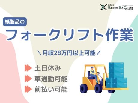 仕事内容 主な仕事内容は★ パレットに積んだ厚紙をリーチフォークにて運搬していただきます。 パレットの設置やフォークリフトの清掃等多少の軽作業はございますが、 就業時間の80%以上はリーチフォークによる運搬業務となります。 【職場環境】 ★20~50代男性活躍中 ★未経験者活躍中 ★屋内 ★研修あり ★マニュアルあり 【入社後研修ありで安心のスタート】 「新しい環境でのお仕事は不安…。」 などなど、心配する必要はありません!! 入社後に1~2ヶ月の研修がある他 社員の方や周りの方が優しくフォローしてくれるので安心して挑戦できます♪ 【大浴場完備】 毎日利用可能な大浴場を完備しております! お仕事の疲れを温かいお風呂でリフレッシュできます♪ 【嬉しい前払い制度あり◎】 アプリで申請可能!申請後、即入金◎ 急な出費があっても安心です♪