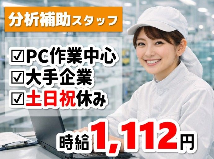 仕事内容 【 ガラス基板の分析補助スタッフ募集】 半導体などに使われるガラス基板を扱う大手メーカーで、分析業務をサポートするお仕事をお任せします! 専門知識は必要なし! ▍お仕事内容 ……………………………………… ガラス基板の分析補助業務 ・専用アプリケーションを使用した分析装置の操作 ➡PCを使用したデータ入力などが中心です ・測定や分析データの入力、整理 ・ データ管理・入力 ・分析結果をExcelやシステムへ入力 ・データの確認、整理作業 ガラス基板の整理・管理 ・使用前後のガラス基板の仕分け、整理 ・不要になった基板の廃棄作業(ルールに沿って対応します) メール対応 ・社内関係者へのメール送信 ・簡単な連絡や報告が中心です 専門的な知識は不要 PC操作や入力作業がメイン 基本は事務所ですが、クリーンルームに入る事も あります ▍ここがポイント ……………………………………… ✨ 専用のアプリを使用します(研修有) ✨ 分析業務のサポートなのでやりがいもばっちり◎ ✨ パソコン作業中心で体への負担少なめ ✨ 大手メーカーで長期安定勤務 ✨ 20代~40代男女スタッフが活躍中 ▍NCIのおすすめポイント ……………………………………… 入社前から就業後まで担当営業がしっかりフォロー 社会保険完備(条件を満たせば即日加入OK) 誕生日プレゼントやイベント特典あり 定期フォローがあり、安心して働ける環境です
