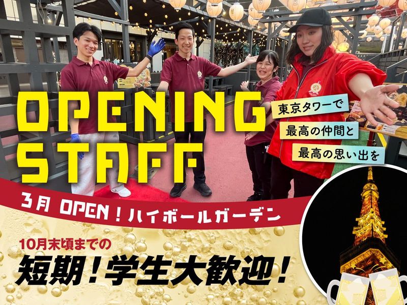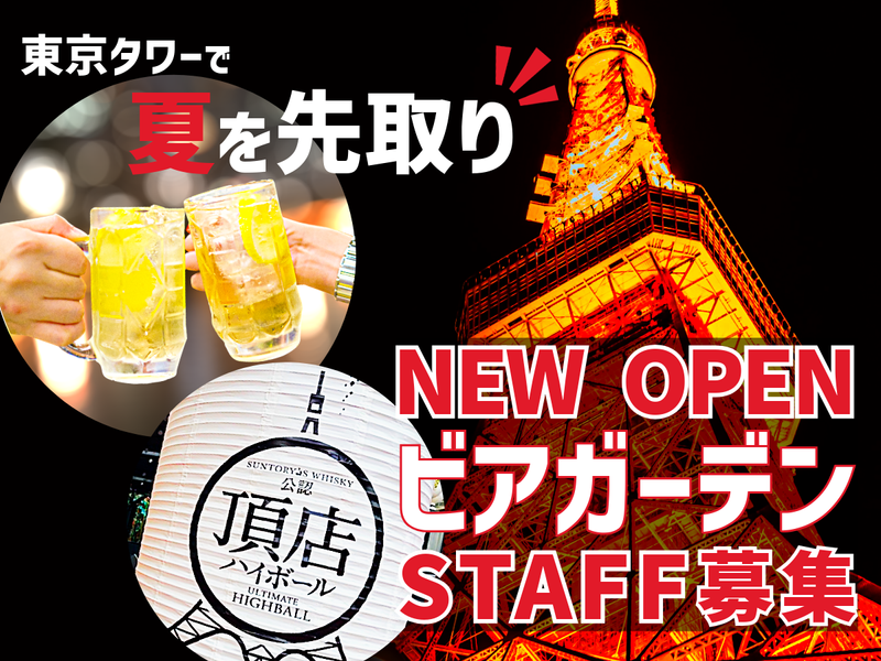 仕事内容 ★★★★ この求人のPOINT♪ ★★★★ ・3月にOPEN!!*10月中旬までの短期バイト ・語学力UPのチャンスあり!? ・学生さん、フリーターさん活躍中◎ ・英語が話せなくても問題なし! ★★★★★★★★★★★★★★★★★★★ 東京タワーのビアガーデンで、最高の夏を過ごしませんか? 当店は、お客様の7割が海外からのお客様。まるで小さな世界旅行をしているような、活気あふれる職場です!「ゆくゆくは留学したいな…」そんなあなたにピッタリ!英語や中国語が飛び交う環境で、語学学習のきっかけを掴めます♪ 大切なのは、あなたの「やってみたい!」という気持ち。東京タワーで、世界とつながる特別な夏を体験しませんか? ――――――――――――――――――― 【仕事内容】 最初は、ドリンク作りなど、簡単な作業からお任せします。お店の雰囲気や仕事に慣れてきたら、少しずつできることを増やしていきましょう!ドリンクや料理のメニューを覚えたら、レジ・会計対応にもトライしていただきます。 開店前には、簡単な準備作業もあります。本格的な仕込みや準備はありません。カット済みのお肉を解凍する程度なので、すぐに覚えられます◎ ■レジ・会計対応 ・料理やドリンクの注文対応 ・お会計 「英語で話しかけられたらどうしよう…」そんな心配は不要です!英語メニューや中国語メニューをご用意していますので、メニューを指さして確認すれば大丈夫。先輩スタッフもサポートしますので、ご安心ください。 ■ドリンク作り ・ご注文いただいたドリンクを作る ・お会計時にお客様にお渡しします ■調理・配膳 ・温める、盛り付けるなどの簡単な調理 ・料理の配膳 基本的に、お会計時に料理をお渡ししますが、提供までに少し時間がかかるメニューは、後から番号札を頼りにお客様の席までお運びします。 ※東京タワーの別フロアに同じく期間限定オープンの系列店があります。混雑状況次第ではヘルプで行ってもらう場合があります。 【語学力に自信がない方も、大歓迎!】 英語メニューや中国語メニューもご用意しているのでご安心ください♪英語が話せないスタッフも多数活躍中!先輩スタッフが丁寧にサポートするので、安心してスタートできます◎ 10月中旬頃までの期間限定の店舗ですが、お店の雰囲気を気に入ってくれ前年から引き続きバイトしてくれているスタッフもいます!学生さんやフリーターさんなど若いスタッフが多いのでバックヤードでは気軽にコミュニケーションを取っています♪