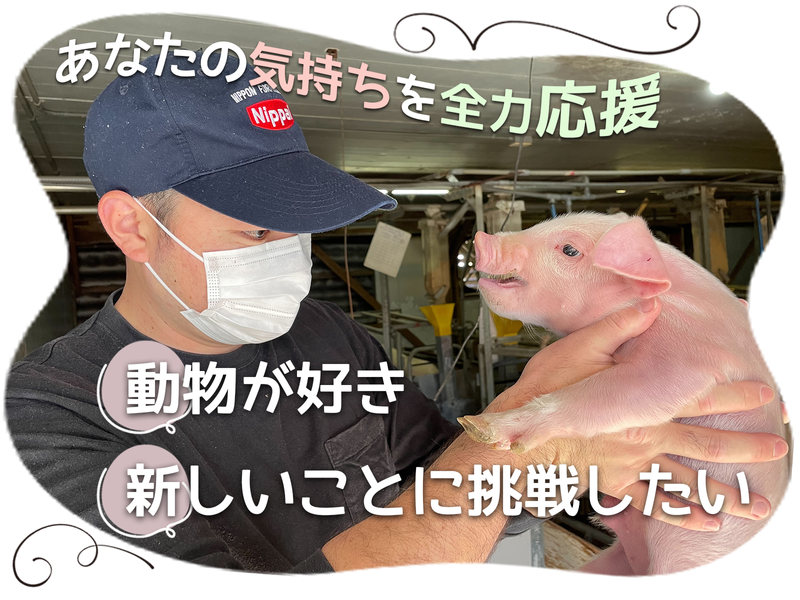 仕事内容 ▶未経験も安心の教育体制✨ ▶家賃補助/第二新卒・新卒対象(2年間) ▶夜勤ナシ!年間休日104日&週休2日 ▶プライベートも大切にできる環境 ▶10〜50代の幅広い年代が活躍中! ▶基本定時退社♪残業月平均30分 ✧・…………………………………………・✧ ◤ 豚と向き合う、 穏やかで確かな日々を ◢ 熊本県阿蘇郡の「波野農場」では、 豚たちを健康に育てるための飼育・繁殖・ 環境管理など、命に寄り添う幅広い業務を 行っています。 「体を動かす仕事がしたい」 「自然の中で働きたい」 未経験からスタートした仲間も多数在籍♪ 10代から50代まで、幅広い世代が 力を合わせて活躍中です◎ 通勤時間は30分〜1時間ほどのスタッフが 多く、残業もほとんどありません。 ✧・…………………………………………・✧ ◤ 仕事内容 ◢ ▍飼育管理 豚舎の清掃やエサ・水の補充、 体調チェックなどを通して、豚が健やかに 育つよう日々の環境を整えます。 自動給餌機や給水設備の確認もお任せ。 ▍繁殖管理 母豚と子豚の健康を見守りながら、 交配・分娩のサポート、授乳や離乳後の ケアなどを行います。 命の誕生に立ち会えるやりがいのある お仕事です。 ▍環境・施設管理 豚舎の温度・湿度を一定に保ち、 快適な環境を維持。 設備の点検や簡単な修理、糞尿処理・ 堆肥化施設への運搬なども行います。 ▍記録・報告業務 飼育データをPCに入力し、 成長や健康状態を「見える化」。 クラウドシステムを活用し、 チームで改善・共有しています。 ✧・…………………………………………・✧ ◤ 教育・サポート体制 ◢ 未経験入社が約9割の職場です! OJT制度で丁寧に教えていくので、 3ヶ月で業務の基本を習得◎ 月1回の獣医師研修で専門知識も学べます。 経験者の方は、スキルに応じて リーダー候補として活躍することも可能✨ もちろん、医療・製造・接客業など、 異業種出身の先輩も多く活躍しています!