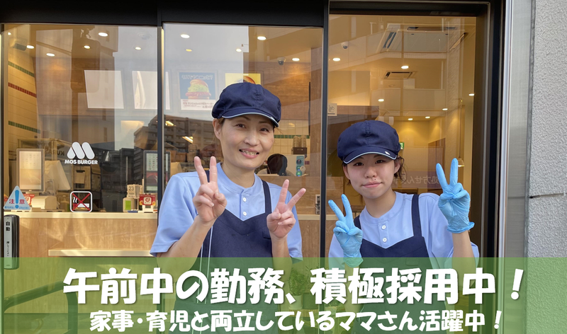 仕事内容 \✨家事・育児との両立応援✨/ 「久しぶりのお仕事で不安…」 「子供が学校の間だけ働きたい」 「扶養内で調整したい」 そんなお悩み、モスなら解決✅ ⭐ここがポイント⭐ ✅駅徒歩2分の好立地! ✅週2日〜、週2日〜OK ✅履歴書不要で面接OK! ✅食事補助:全メニュー50%OFF ✅丁寧な研修ありマニュアル完備&先輩がサポート。 ブランクがある方も安心です⏩ ┏━━━━━━━━━━┓ ⭐お任せするお仕事⭐ ┗━━━━━━━━━━┛ カウンターでの接客業務、 またはキッチンでの調理業務をお願いします。 どちらか一つの担当から スタートするのでご安心ください✨ 《 カウンター業務 》  ̄ ̄ ̄ ̄ ̄ ̄ ̄ ̄ ̄ ̄ ̄ ̄ ・笑顔で「いらっしゃいませ」 ・レジでのご注文伺い ・ドリンク作り ・できたて商品の提供 ・店内のテーブル清掃 などまずは明るい挨拶からスタート! 常連のお客様との会話も楽しみの一つです♪ 《 キッチン業務 》  ̄ ̄ ̄ ̄ ̄ ̄ ̄ ̄ ̄ ̄ ̄ ̄ ・ハンバーガー作り ・ポテトやチキンの調理 ・野菜のカット(仕込み) ・洗い物や片付け など調理マニュアルがあるので、 料理が苦手な方でも大丈夫! 包丁作業も少なめです 【主婦Aさんの働き方(例)】 08:30⏩子供を学校へ ▼ 10:00⏩出勤・お仕事開始 制服に着替えてシフトイン。 ランチピークに向けて準備! ▼ 12:00⏩ランチタイム 忙しい時間帯ですが、 仲間と協力して乗り切ります✨ あっという間に時間が過ぎます。 ▼ 14:00⏩お仕事終了・退勤 「お疲れ様でした!」今日の夕飯の買い物へ。 駅チカ&商業施設が近くて便利♪ ※あくまで一例です。 あなたのライフスタイルに合わせて調整可能です✅ ✅自分らしく働ける環境 ━━━━━━━━━━━━ 髪色・髪型も自由度高め✨ 過度でなければオシャレも 楽しみながら働けます。 ✅明確な評価制度 ━━━━━━━━━━━━ できることが増えればしっかり 昇給・評価されます。 「ゆくゆくは社員を目指したい」 という方も応援します! ✅シフトは2週間ごと ━━━━━━━━━━━━ 子供の急な発熱や学校行事… そんな時もスタッフ同士で 助け合う風土があります。 無理なく相談してくださいね。 【先輩スタッフの声(30代・主婦歴3年目)】 「下の子が小学生になったのを機に、 パートを始めました。最初は久しぶりの 仕事でレジ操作など不安でしたが、 店長や先輩が優しくて感動! 何より嬉しいのは食事補助。 半額で買えるので、休日のランチ用に テイクアウトすると子供も大喜びです 家計も助かっています(笑)」