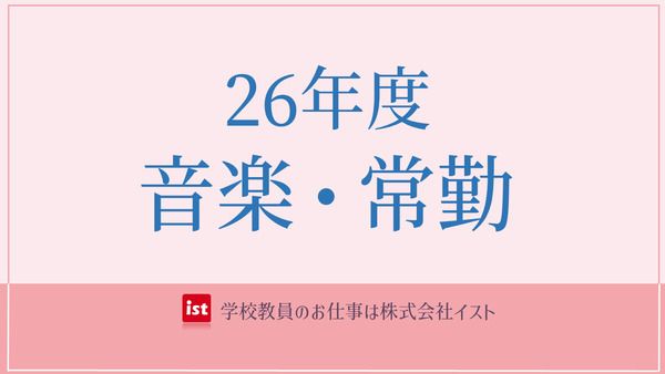 仕事内容 神戸市エリアにある高等学校で \新年度 音楽科教員/を募集いたします! 募集:常勤講師 期間:2026年4月1日~2027年3月31日 ※次年度更新や、専任登用の可能性がございます。 指導:高校音楽 ■学校の特徴 神戸市の中心地にございます。 複数のコース設置の多彩な生徒が多く在籍している活気溢れる学校様です。 働かれている教職員も若い年齢層の方が多く、新卒など未経験の方もご活躍いただける職場です! 教えることが好きで、懇切丁寧に指導できる方歓迎! 生徒に歩みより寄り添ってくれる先生を募集! ぜひご検討ください。 ■求人のおすすめポイント ①若手人材が伸びる!活躍できる!職場です。 ②基礎レベルから生徒に丁寧に教えられる先生を募集! ③週休二日で週末はしっかりリフレッシュ! 勤務日も午後7時半には完全退校と、平日夜もプライベート充実! ■各主要エリアからのアクセス方法 神戸市 ☆大阪駅からも50分程度で学校へ到着! ■選考方法 ①本求人ページからご応募 ※本ページでのご応募は正式なエントリーではございません。 応募後詳細をお伝えしご納得いただいた上で選考に進めますので お気軽にご応募ください! ↓ ②お電話にて求人の概要をお伝えします ↓ ③エントリー ※求人の概要をご検討頂いてからでOKです! ↓ ④書類選考 ↓ ⑤弊社面談 ↓ ⑥学校打ち合わせ ↓ ⑦勤務開始 ■求人番号 [27052606]