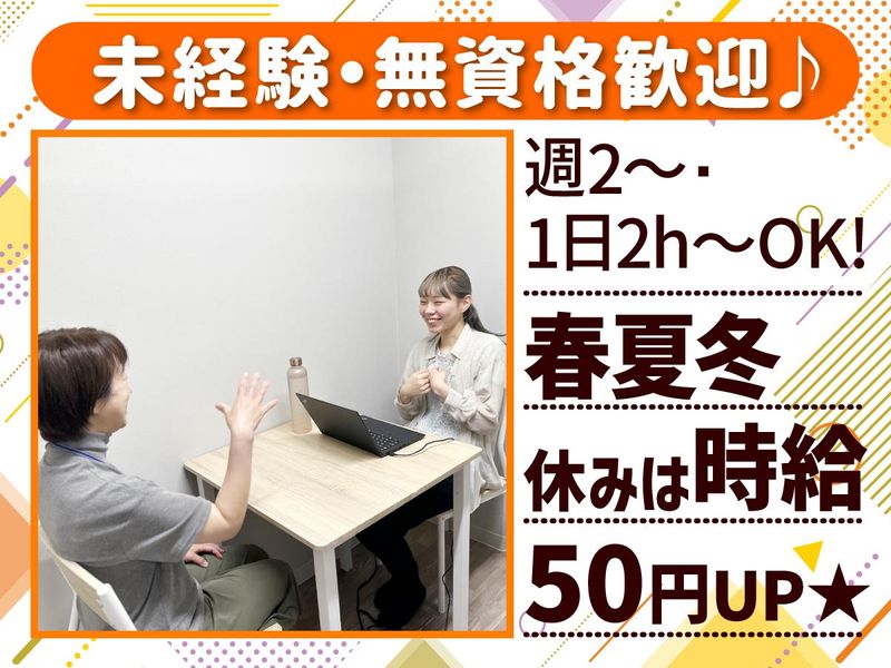仕事内容 ■ 週2~、1日2時間~OK! ■ 平日のみ・短時間・扶養内勤務OK! ■長期休暇もあり家庭も大切に◎ ■ 子育てしながら働く主婦さんいます◎ ■ ご家庭と両立、ご相談ください^^ - / 放課後デイサービスで 働いてみませんか? \ 子育てしながら働く主婦さんも多数◎ 保育園や幼稚園、小学校…そんな お子さんやご家族の都合に合わせて 働き方は柔軟に相談に乗ります^^ 週2日~、1日2時間~OKなので お子さんを送り出したあと、 帰ってくるまでのスキマ時間をうまく 活用して働きたい! という方はぜひご応募くださいね。 ▼ 家庭と仕事のバランスを見つけましょう - 小さなお子さんがいると、 働きに出るのは億劫になるもの。 同じように子育て中のママさんパパさんや 子育てが落ち着いたスタッフも多いので、 あなたの不安をとても理解できます。 無理のないバランスを、 一緒に見つけていきましょう。 ▼ 服装も肩肘はらなくてOK! - 派手すぎなければ、 *髪型髪色自由 *ピアス・アクセサリーOK *ネイルOK *私服OK ―――――【仕事内容】――――― 放課後デイサービスでのお仕事。 お仕事は大きくわけて3つ! ■いっしょに遊ぶ お絵描き / 公園遊び / 工作など ⇒成功体験を増やしてあげましょう! ■生活のサポート 手洗いうがい / 宿題 / 片付けなど ⇒習慣づくりを応援します! ■お見送り・お出迎え(運転免許必須) ⇒笑顔で迎え、ご家族にその日の様子を伝えます。 ⇒車は軽自動車やファミリーカーだから安心。 ★複数人で子どもを見るため、1人で不安になることはありません。 ★低学年の子が多く宿題内容は難しくありません◎ ★毎月のお誕生日会の他に、季節毎のイベントを考えて行ったり、公園や水族館に遊びに行ったり等、おでかけも有♪ ★長期休暇中のシフト増減も相談可能 ―――――――――――――――― 今年も沢山の子ども達が 入園してきてくれました! 子どもも先生も、新しい環境で 一緒のスタートです◎ ―――――――――――――――― 「働く」というより子ども達の 成長を見守るお仕事。 子ども達が自分の個性を受け入れ 活かせるよう、時には友達、 時には先生として、 一緒に歩むやりがいがあります!