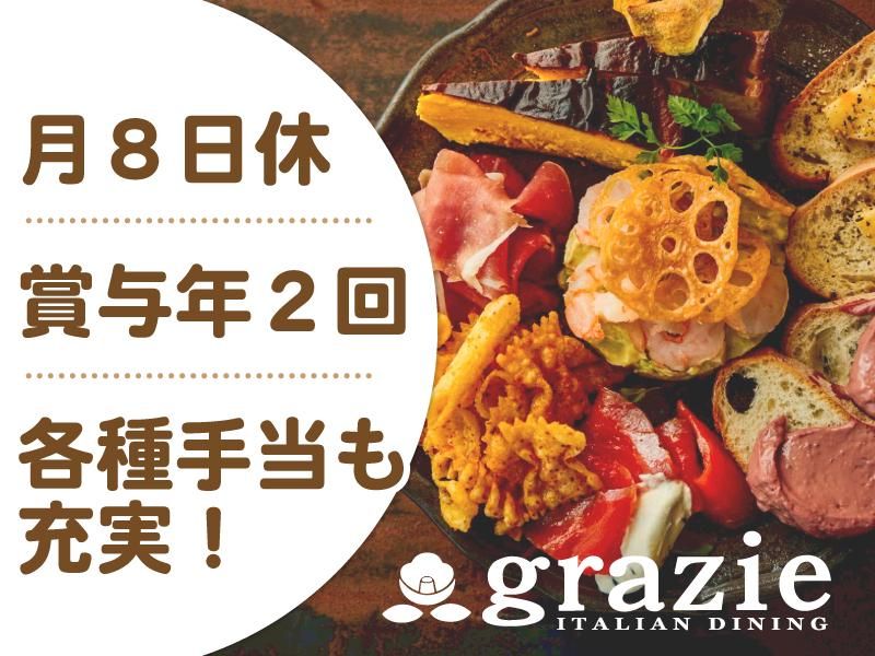 仕事内容 / 札幌の人気イタリアンダイニングが新業態としてNEW OPEN! 新店の立ち上げに携われる貴重なチャンスが待っています! \ イタリアンを中心に多彩な料理をカジュアルに味わい、お酒を楽しめるダイニング「グラッツェ」のホール業務をお任せします。 今回募集する新店の「南5条店」は新たな業態「ニューイタメシ酒場 grazie」としてオープンしました。 9月にオープンしたばかりの新店ですが、早くもSNSなどメディアで話題を集めています。 そんな人気店の仲間入りを果たそうとしている「ニューイタメシ酒場 grazie南5条店」のオープニングメンバーを募集します! *具体的なお仕事は・・・ お客様のご案内や料理のご提供、お会計、予約の受付など、一般的な接客のお仕事から始めていただきます。 基本業務の他に、経験者としてアルバイトスタッフへの指導やシフト作成、売上管理などの店舗運営業務のサポートもお任せします。 ゆくゆくは店長などへの、キャリアアップを目指していただくことも可能です。 オープニング募集のため、新たな環境で働きたいとお考えの方にピッタリ。 自分たちの手で新店を創り上げていくという「今」しか味わえない達成感が、あなたを待っています! 【グラッツェは「ありがとう」を大切にするお店です】 店名のgrazie(グラッツェ)はイタリア語で「ありがとう」という意味。OPEN以来「夢とありがとう」を大切にしているお店です。 グラッツェでは誕生日や記念日などお祝いの日にご来店してくださるお客様も多く、そんなお客様のためにサプライズを全力でお手伝いさせていただいています。 そのため、誕生日や記念日などお祝い事のサプライズをする機会も多く、いつもとは違った接客を楽しめます! 接客経験を活かしつつ、「お客様に喜んでいただくためには?」を常に考え、アナタの接客や心遣いでお客様に幸せな瞬間を届けてください! 新店である「南5条店」もご来店してくださったお客様と一緒に働く仲間に感謝の気持ちを持ち、共にグラッツェでの素敵な空間を楽しんでいただける方を歓迎します。 *今回の募集では新店の『ニューイタメシ酒場 grazie すすきの南5条店』での勤務となりますが、 『グラッツェ札幌駅JR55店(札幌駅徒歩2分)』 『グラッツェすすきの南3条店(すすきの駅徒歩3分)』 『グラッツェ北2条店(さっぽろ駅徒歩2分)』 『ニューイタメシ酒場 grazie すすきの南4条店(11月OPEN)』 店舗の状況により上記いずれかでの勤務となる場合もあります。 また、別業態の新店舗の店長・料理長や本社勤務などのキャリアパスもございます。 【キャリアアップのチャンスもあります!】 当社は社員ひとり一人が、「将来何をやりたいのか」を大切にしています。 それを知るためにも定期的に行われるミーティングや年2回の面談で、上長と話し合える機会を設けています。 普段の仕事の悩みなどはもちろん、キャリアアップなどについての相談も大歓迎です! また、グラッツェ以外にもレモネード専門店や韓国商店など幅広くお店を展開をしているため、希望があれば別業態での経験を積むことも可能です。 他にも幹部候補・本社勤務などのポストも多数あるため、現場での経験を活かして飲食事業を展開する企業の中心人物を目指せます。 経験や能力に応じた仕事やポジションをお任せし、その後は希望や適性に応じて店長やSVなど、満足のいくキャリアを築いてみませんか?