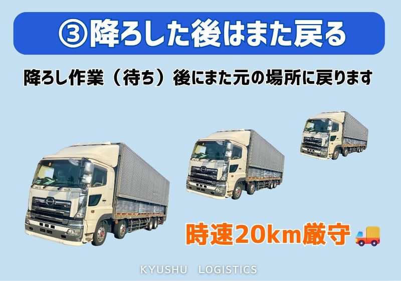 仕事内容 ◇================◇ <リフト・大型免許必須!経験活かせます♪> 構内での運転だけなので安全・安心◎ 30~40代男性中心に活躍中! ◇================◇ 外壁資材を敷地内の別の場所に運ぶお仕事です。(横持ち) 10tトラックの運転&積み込み作業をお願いします。 フォークリフトで資材をトラックに積み込み、 ゆっくりトラックで運び、指定の場所に降ろす作業! ※降ろす作業は他のスタッフがしたりもします 敷地内は速度制限20km/時なので、事故のリスクも少なく安心して運転していただけます✨ 運ぶ場所(倉庫)は数カ所のみなので、難しい作業はありません。 ⭐働きやすさのポイント⭐ 開始時間は朝6時代と早いですが、通勤ラッシュとは無縁! 帰りも15時台なので帰宅ラッシュにも合わずにスムーズに通うことができます。 (意外と重要なポイント✨) 工場カレンダーによってシフトは変動しますが(事前) 無理はシフトはなく、4勤2休、1勤1休…なんてこともあります。 逆に、今月は少し稼ぎたい!ということでシフトを増やす方もいたり。 シフトは相談もできるので予定がある場合などは相談ください✨ ⭐暑さ対策もばっちり⭐ 希望者には空調服を貸出し。 夏はスポーツドリンクの差し入れもしていて、無理せず水分補給の休憩も積極的に取っています。 少しでも体調が悪くなった場合はすぐに相談するように全スタッフにお願いしてます✨ 健康第一、安全第一を大切にしている職場です! ⭐経験活かせます♪ブランクOK⭐ 独り立ちするまで、入社後1ヶ月程度は先輩が横について作業を教えてくれますので、分からないことはすぐに質問できます。 職場では、"安全運転第一"を心がけており、焦らず、確実に技術を習得できる環境を整えています。 一人デビュー後も近くに先輩はいますので、フォローが必要な時はサポートします。 その他、社外講師を招いた「ものづくり研修」や、IT関連やQC検定についての資格取得補助があり、スキルアップのチャンスもあります。 希望があれば、将来的に他部署への異動やキャリアアップも可能!長~く腰を据えて働きたい方は必見です。 がんばった分評価され、年次関係なく早く昇進する若手も活躍中! 【九州物流株式会社について✨】 わたしたち九州物流株式会社は、住宅建材の製造加工を主軸に、 1982年の創立以来、高品質で信頼性のある製品の提供に努めております。 自社工場内で大手外壁材メーカーの純正品を加工・塗装、 メーカー工場内でラインやリフト作業、構内物流などをのお仕事を請け負っています。 また、福岡県北九州市のご当地ヒーローキタキュウマンのメインスポンサーなども行っています。