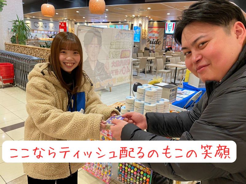 仕事内容 札幌市内の商業施設で行われるPRキャンペーン業務✨ 特設ブースやフォトスポットなどの設営! お客様が気軽に立ち寄ってワクワクするような空間を一緒に作っていただきます✨ *。・――――――――――――・。* ⏩ 未経験からスタートOK! ⏩ 安心のサポート体制◎ ⏩ 長期で安定して働ける! ⏩ 正社員登用あり(月給24.5万円〜) *。・――――――――――――・。* ⏩【あなたに任せたいお仕事】 *。・――――――――――――・。* ✅キャンペーンのご案内 ✅ティッシュ配りなどの簡単なPR業務 ✅ビンゴ・抽選会へのご案内 ✅現在の契約状況に関するアンケート取り ⏩【まずはココカラ】 *。・――――――――――――・。* 設営の準備のお手伝い! ▽ 取り扱う商品の知識を覚える! ▽ 先輩スタッフと二人一組で「ビンゴやっていきませんかー!?」などの声掛け! ▽ はじめは先輩スタッフと二人一組で行う、ペア制スタートでしっかりフォローしていきます。 簡単な仕事から徐々に慣れていきましょう! ┏━━━━━━━━━━━━━━┓ Universal Marketingの特徴✨ ┗━V━━━━━━━━━━━━┛ ⏩就業先の雰囲気⏩ ―――――――――― ┗20代~30代のスタッフ! ┗本当に接客未経験者の方も活躍中✨ ┗音楽をやってる人が多い職場✨ ⏩スマホ関連の知識が深まります⏩ ――――――――――――――――― ┗仕事を通じて、自分のスマホの料金プランを見直せる知識がついて無駄な出費を省けるようになるかも!? ⏩【 ス タ ッ フ 紹 介 】 ―――――――――――――――――― 名前:経験ゼロスタートのOさん 20代 社歴:4カ月 出身:浜頓別町 血液型:A型 好きな食べ物: カレーライス!みんなが知っている老舗カリーの小エビカレーが美味しい! 苦手な食べ物:ゆで卵など!たまごの黄身と白身が混ざってないのが…。苦手です。 趣味:ゲーム!FPSなど! ✅入社して「大変」だと思ったこと ――――――――――――――――― 働く場所が毎回違うので慣れるまで少し時間がかかりました! 接客業務なども未経験だったので仕事の流れを掴むが…。 周りの温かいサポートがあって徐々に自信がついてきました。 ✅この仕事していて良かったこと ――――――――――――――――― 頼りになる先輩スタッフが多い✨ 最初にティッシュ配りをするときも、先輩スタッフが一緒に配ってくれてやり方を教えてくれた。 接客に関しても一緒に対応してくれるので安心しながら業務を覚えることができた。 社員同士のコミュニケーションをとる機会も積極的に作ってくれるので仕事しやすいです! いつもありがとうございます。 ✅求職者にメッセージ ――――――――――――――― テッシュ配り一緒にやります! サポート体制も充実しているので安心してください! 頑張ってる人を応援してくれる環境なので、真面目に業務を覚えていけば驚くほど販売スキルが成長します。 ご応募お待ちしております
