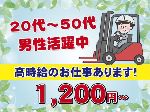 フォークリフト作業/20~50代男性活躍中 時給1200円~/前払いOK/土曜・日曜休み