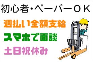 仕事内容 派遣先企業への正社員登用もあります!初心者、ペーパードライバーもOK!当社の週払いは全額支給!電話面接でスピーディ対応中!即日勤務可能。 履歴書は写メでOK!正社員で活躍していた方や中高年・30代・40代・50代の男女活躍中。派遣での倉庫内作業(リフト作業)をお探しの方必見です。 【こんな方も大丈夫】 フォークリフト免許を持っているペーパードライバーやリーチフォークに自信がないという方もOK。他の現場で「経験が浅い人は・・・」と断られた方も大丈夫。 ブランクのある方、カウンターフォークリフトの経験しかない方もご安心を! 仕事をしながら徐々に慣れてもらうスタイルの職場ですので心配いりません。 【環境抜群のきれいな倉庫内でのお仕事】 商社系の卸倉庫内で主に雑貨などの棚入れ・格納・出庫作業がメインになります。 リーチフォークリフトでの商品の移動や台車やハンドドリフトを使用しての移動もあります。 フォークリフト作業の時間はあまり多くないので、フォークリフト初心者でも大丈夫。 服装・髪型・髪色自由であなたらしく働けます。 【残業無し、土日祝日休み】 基本的に残業はありません。 土日祝日休みで人気の日勤ですので生活リズムを崩すことなく働けます。 :この仕事のおすすめポイント: ・残業ナシ!土日祝日休み! ・初心者、ペーパードライバーOK ・正社員への登用制度あり!! ・服装自由、髪型・髪色自由 ・急な出費にも助かる週払い対応あり ・週払いは嬉しい満額支給 【通勤も便利】 勤務地の倉庫があるのは北葛飾郡松伏町です。駐車場を完備しているので車通勤(マイカー)もOK。 このエリアは松伏町はもちろん、近隣の市町村から通勤しているスタッフも活躍中です。 フォーク免許があれば…… 男性も女性も中高年の方も活躍できます! 倉庫内作業以外にも工場・物流・ドライバーでフォークリフトの経験がある方はこれまでの経験を活かして仕事ができます。 派遣で働くのが初めての方もお気軽に!!アルバイト・パート・契約社員の方もご検討ください。 ◆出張面接大歓迎! お気軽にお電話または応募フォームより ご連絡ください。 <お電話でのご相談・お問い合わせ> フリーダイヤル/0120-090-699 受付時間 : 10:00~18:00(土日祝日休み) <応募フォームから> 24時間365日受付けております。 エントリー確認後、ご連絡させていただきます。 ご連絡のつきやすいお電話番号、時間帯をご入力下さい。 ※折返しのご連絡に2~3日かかる場合がございます。