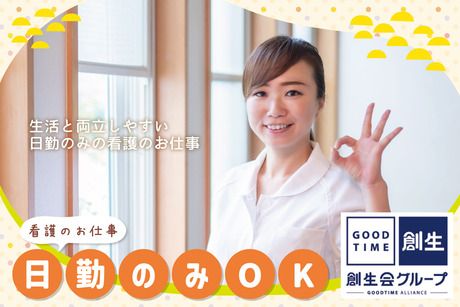 仕事内容 【仕事内容】 // 「家庭的であたたかな雰囲気の中、自分のペースで働けます!」「ライフスタイルに合わせて無理なく勤務◎ 長く続けられる職場です!」「チームで支え合う風土があるから、初めてでもブランクがあっても安心!」 \\ ┏━お任せする職種は━┓ 正看護師 有料老人ホームでの看護業務 ┗━━━━━━━━━━┛ ・・・*業務について*・・・ ◆有料老人ホームにおける日々の看護業務。 ◆お薬の管理やご入居者様のバイタルチェックなどの健康管理が主な業務になります。 ◆ゆったり、丁寧に心を込めてご入居者様に接することができます。 ・・・*ここがポイント!*・・・ 株式会社創生事業団は有料老人ホームを全国に展開しています。 国内20法人・海外2法人を合わせ550を超える事業所を展開している「創生会グループ」の一員として、更なる成長を目指します。 就業環境の改善を含め、給与体系も一新。働く皆さんの笑顔を大切にします。 ━━━━━━━━━━━━━━━━━━━━ お仕事情報: ひまわり会館 新瑞橋/<正看護師 日勤パート> - お気軽にご応募ください! 担当者より追ってご連絡いたします。 - 【アピールポイント】 我々創生会グループは業界トップクラスの規模で全国に展開中です!  ̄ ̄ ̄ ̄ ̄ ̄ ̄V ̄ ̄ ̄ ◎勤務先が多数!! 東海地区23拠店を展開している有料老人ホームでのお仕事となります。 お住まいから近い拠点を中心にお仕事が出来ます。 風通しの良い環境で情報交換や、研修会などの情報共有も行われています。 実務経験が無い方や有料老人ホームが初めての方にも、教育・研修システムがあるので安心してお仕事して頂けます。 ◎たくさんの仲間が活躍中 他の有料老人ホームの業務では見られない新しい取り組みにチャレンジしたり、 個人の能力を活かせる機会が豊富にあります。 ご興味のある方はお気軽にお問い合わせください。