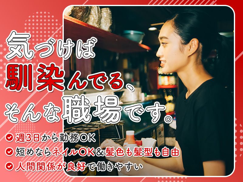 仕事内容 ↓↓ 求人のPOINTを要チェック ↓↓ *…*…*…*…*…*…*…*…*…* ✨シフト制で柔軟な働き方が叶う! ✨スタッフ同士の人間関係が良好! ✨能力に応じた昇給あり! ✨髪型やネイルなどの縛りがほぼなし! *…*…*…*…*…*…*…*…*…* 【 仕事内容 】 〇一品料理の調理と管理 〇料理の提供 など 【 教育制度 】 入社から1ヶ月は先輩社員が マンツーマンで、丁寧に指導します! 調理未経験の方でもご安心ください。