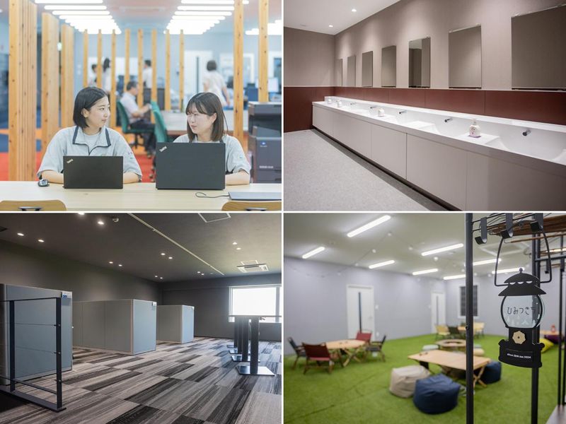 職場環境 【 2023年に改装した新本社での勤務 】 工場・技術センター共に、小牧市内から移転してきたばかり。快適にミーティングできるスペースが確保しやすくなりました。