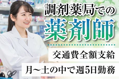 仕事内容 ◆総合病院目の前の調剤薬局で薬剤師のお仕事 <具体的には…> *処方箋受付、調剤業務 *患者様への薬の説明(服薬方法など) *薬歴や投薬の管理 *レジ会計 *在宅医療業務(調剤、健康相談など) *医薬品の在庫管理 など 地域密着の調剤薬局として 近隣医療機関の処方箋に対応しています。 また、在宅医療にも力を入れており 患者様の健康を支えています★ ◆腰を据えて働きたい方にオススメ!20代~40代の男女活躍中 薬剤師の経験を活かして20代~40代の男女が活躍中! システムの使い方や機械の操作方法など 先輩がしっかりお教えするので安心してお仕事スタートできます。 子育てが落ち着いてお仕事復帰した方や 家事&育児と両立して働く方も在籍しています◎ ■平日は18時まで◎週5日フルタイム勤務だから安定して稼げる! 日祝休み、土曜日はお昼までの勤務のため 家族や友人とのスケジュールも合わせやすい! 平日もお仕事は【18:00】に終了するので 遅くなりすぎることはありません♪ 「スキルをさらに磨きたい」 「家庭と両立しながら働きたい」 「資格を活かしてしっかり稼ぎたい」 どんな理由でも大歓迎です! 駅から徒歩すぐで通勤も楽らく♪ コンビニや飲食店も多い便利なエリアです◎ ◆来社&履歴書不要!電話でお仕事のご紹介が可能です。 今回募集しているお仕事に関して もっと詳しく説明してほしいと思われた方には、お電話でしっかり説明します。 来社&履歴書不要でお仕事のご案内が可能なので 仕事が休みの日や仕事終わりなど、 あなたの都合のよいタイミングで連絡いただければ希望のお仕事を案内しますので まずはご応募ください。