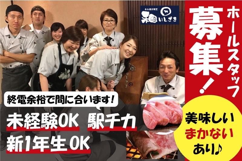 仕事内容 「あみ焼き割烹和牛いしざき」 ホールスタッフ募集! 新1年生注目! 未経験からでも始められるバイトになります! まずは和牛いしざきについて! その1.休憩時間も時給が発生!! これは中々無い制度です! 30分休憩しているのに時給が発生! プチ不労所得が気分が味わえます(笑) その2.賄いがすごくおいしい その3.女性が多く活躍中! 女性が約10名、男性が5名という 内訳になります! 落ち着いた所で働きたい方には ぴったりの職場です! 【仕事内容について】 ご案内、注文取りや食材や ドリンクの提供等のホール業務全般をお任せ。 しっかり指導するので未経験でもOK◎ バイトデビューも応援してます◎ ホールは6人程度で回していくので 助け合いながら安心して働けます! 定着率バツグンのお店です⭐ 【入社2年目の大学生アルバイトAさんにインタビュー⭐】 客層が落ち着いているお店がいいなと思い、 いしざきでのアルバイトを決意しました! 実際、接待や記念日などの利用が多く 落ち着いたお客様が多いですよ。 お客様の卓に入ってお肉を焼く時も、 最初は緊張してただ焼くことしかできませんでしたが、 3ヶ月程度でお客様との お話も楽しめるようになりました。 お得意様が多いので、 お客様と仲良くなることもありますよ! 日常生活では会わないような 会社の社長さんから接客を褒められたりするのが嬉しいです! 就職活動にも活かしたいと思います◎