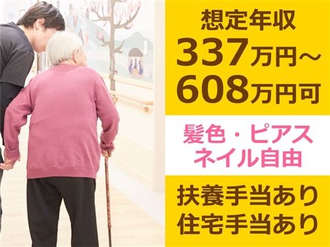 想定年収337万9920円~608万7000円可!入職祝い金10万円支給あり◎扶養手当や住宅手当もあり★髪色・ピアス・ネイル自由♪【吹田市、デイサービス、岸辺駅、介護福祉士、正職員】