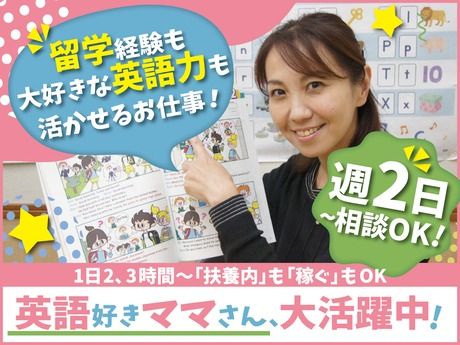 あなたの英語力、英語系の仕事経験、留学経験、こども好き…ココで活かせる!週2日~・扶養内など相談OK