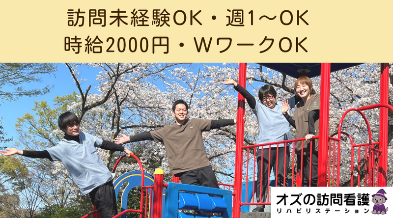 仕事の内容 ・週1~働ける職場ないかな ・Wワーク出来る職場ないかな ・病棟だと、1人1人によりそう看護ができないんだよね・・ ・安定した経営母体の元で、働きたい! ・医科歯科連携に興味がある ・摂食嚥下に興味あるし、口腔ケアもやっていきたい! ・スタッフを大切にする職場で働きたい! ー もし、これらの中に1つでも該当することがあって、「何か、良い職場ないかな?」って探しているなら、この求人がお役に立てるかもしれません。 なので、チョット、読んでいってもらえれば嬉しいです。 ー 初めまして、こんにちは! 「オズの訪問看護リハビリステーション」の運営会社(株式会社ヴィレッジ・ヴァンガード(雑貨店とは無関係です(笑)))代表の三橋健一郎と申します。 私自身、歯科医であり、約20年以上、川崎市麻生区王禅寺で、「王禅寺歯科クリニック(医療法人社団 健歯会)」を運営しています。 地域密着型の歯医者で、「外来」と「訪問診療」を行っています。 そして、「患者さんと一緒に歳をとりながら、地域の方の健康を見守っていく」といったコンセプトの元、『町中に溶け込んだ歯医者』として運営してきました。 また、僕には、「なかなか進まない医科歯科連携を、なんとかしたい!国主導じゃ難しいから、自分の手で進めていきたい!」といった思いがあります。 ですので、今回、「理想の医科歯科連携を達成する!」という理念のもと、訪問看護リハビリステーションを開設することとしました。 ー それでは、「なぜ、弊社なら、あなたのお役にたてるのか?」について、その理由を、説明させていただきますね。 ちなみに、弊社は「パート職だって、フィットしない職場にいくのは辛い」「だからこそ、しっかりと情報開示すべき」と考えています。 なので、いったん、こちらの求人を『お気に入り登録』いただいて、ゆっくり、じっくりお読みいただければと思います。 ー 【まず弊社の価値観。それは、「スタッフファースト」】 まず、うちの考え方について、説明させていただきますね。 僕は、「患者様を幸せにするなら、まず、スタッフが幸せにならなければならない」といった考えを、もっています。 実際、歯科クリニックも、僕が初代として切り開き、20年以上安定経営ができ、スタッフも20名近くとなりました。 そして、この背景には、『スタッフファースト』の理念があり、「スタッフを大切にしてきたからこそ、今の成長がある」と考えています。 更にいうと、「スタッフが幸せになる」ためには、「スタッフの皆さんが健康であること。スタッフの家族が健康であること」が大事だと考えています。 まあ、「当然と言えば当然」の事なんですが、「当たり前のことができていない職場」って結構、多いので、初めに「宣言」させてもらいました。 以下、「スタッフファースト」の観点で、弊社が提供できることを、お話させていただきますね! ー 【週1~OK】 「子育ての関係で、水曜しか働けない」 「月・水・金だけ働けるんだけどな・・」 みなさん、「それぞれの生活」があるからこそ、こういった悩み、ありますよね。 うちの場合は、あなたのライフスタイルに合わせて、「働きたい枠」で働いていただけます。 もちろん、「あなたの訪問を待っている利用者さん」がおりますので、「与えられた訪問枠」をしっかり働いていただく必要はありますが、「どの曜日の枠で働くのか」といった、ご相談にはのらせていただいてます。 また、あらかじめ「いつもの水曜勤務だけど、来月のこの日だけは、どうしても授業参観でダメだから、こっちと交換できますか?」といった相談にものれます。 つまり、「突然の休みは同僚や利用者さんが困ってしまうけど、あらかじめ段取りして、休んだり調整したりするのは問題ないし。逆にそれができるなら、週1でも問題ない」といった考え方をしています。 ー 【WワークOK】 病院にお勤めの方だと、「木曜だけお休み」といった方、おられますよね。 そういった方が、「週1,木曜だけ、訪問をやる」というのも、歓迎しております。 というのも、やはり訪問っていうのは、「合う、合わない」ってありますよね。 なので、「いったん、週1,Wワークからはじめてみて、自分の適性を見定める」というのも、良いと思っています。 ー 【オンコール無し相談OK】 訪問看護では、「オンコール」があります。 もっとも、看護師さんによっては「どうしても、今は、家庭の事情でオンコールは難しい」といった事もあるかと思います。 この点、弊社は「家庭事情にも寄り添いながら、活躍してもらいたい」というスタンス。 そのため、「オンコールが持てない」という事情のみで、エントリーをお断りはしていません。 ですので、まずはお気軽にエントリーいただき、諸事情をご相談いただければと思います。 ー 【時給2100円・安定支給】 パート職の時給は2,100円としています(同行が必要な見習い期間は1500円となります)。 ちなみに、当ステー