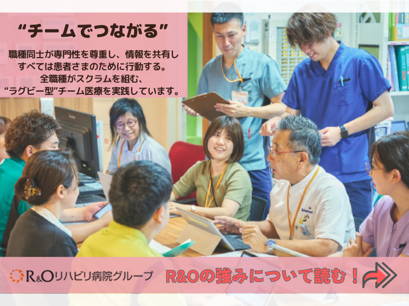 求めている人材 ┏━━━━━━━━━━━━━━━━━━┓ ❖ こんな人と働きたいと思っています! ┗━━━━━━━━━━━━━━━━━━┛ R&Oグループでは、 経験年数よりも「人と向き合う姿勢」を大切にしています。 ❖ 応募資格 ▢ 看護師免許をお持ちの方 ▢ 患者さま一人ひとりに丁寧に関わる看護がしたい方 ▢ チームで協力しながら働ける方 ▢ 私たちの理念や価値観に共感し、ともに大切にしてくださる方 ※ 経験年数、ブランク不問 ※ 外来未経験の方も歓迎 ※ 配属先領域が未経験の方も歓迎 ※ 常勤、パートいずれも応募可能 ❖ 歓迎要件 ▢ 外来での勤務経験がある方 ▢ 病棟での勤務経験がある方 ▢ 整形外科やリハ領域の経験がある方 ▢ ブランクがあり、日勤から復帰したい方 ▢ パートから始めて、将来的に常勤も考えたい方 ┏━━━━━━━━━━┓ ❖ 活躍しやすい人物像 ┗━━━━━━━━━━┛ \◇ こんな方に向いています / ・日勤のみで、生活リズムを整えたい方 ・外来でも、患者さまを支える実感がほしい方 ・患者さまの経過や生活復帰に関わりたい方 ・配属先に応じた専門性を身につけていきたい方 ・チームで連携しながら働きたい方 ・育児や家庭と両立したい方 ・ブランクから復帰し、無理なく働き始めたい方 ・自分に合った働き方で、長く看護を続けたい方 ┏━━━━┓ ❖ 勤務地 ┗━━━━┛ ▢ しずおか整形外科病院 〒420-0821 静岡県静岡市葵区柚木90番地の1 └ JR東海道線 静岡駅よりタクシーにて約5分 └ 東静岡駅よりタクシーにて約3分 └ 静岡鉄道 柚木駅より徒歩4分、春日町駅より徒歩6分 └ 静鉄バス 下横田バス停下車 徒歩5分 ※主要施設は静岡駅から車で約5分圏内に集結しています。 ┏━━━━━━━━┓ ❖ 私たちの価値観 ┗━━━━━━━━┛ ╭━━━╮ ❶ 理念 ╰━v━╯ 「生きるげんき、リハビリで。」 私たちは、身体機能の回復だけでなく、 その人らしい生活の再建を大切にしています。 回復を「点」ではなく「線」で捉える医療を実践しています。 外来看護師もまた、診察の場だけで終わらず、 回復や生活復帰につながる「線」の一部を担う存在です。 ╭━━━━━━╮ ❷ チーム医療 ╰━v━━━━╯ 職種同士が専門性を尊重し、情報を共有し、 すべては患者さまのために行動する。 全職種がスクラムを組む"ラグビー型"チーム医療を実践しています。 外来看護師は、医師の近くで診療を支えながら、 多職種をつなぐ役割も担います。 ╭━━━━━━━━━━━━╮ ❸ 地域とともに生きる医療 ╰━v━━━━━━━━━━╯ 医療は、病院の中だけで完結しません。 静岡という"地域そのものの健康"を支える存在でありたいと考えています。 プロスポーツチームのメディカル支援、ケガ予防活動、市民公開講座、 地域包括支援センターと連携した運動支援など、 地域の健康づくりに直接関わっています。 また地域イベントへの協力など、医療の枠を越えた支援も行っています。 効率的な運営で得た力を 「職員」だけでなく「地域」にも還元する。 R&Oで働くことは—— ✨ 自分の仕事が地域の役に立っている実感 ✨ 家族にも誇れる職場であること につながっています。 医療を通じて、人を支え、地域を支える。 それも私たちの大切な価値観です。 ┏━━━━━━━━━━━━┓ ❖ なぜ若い世代が多いのか ┗━━━━━━━━━━━━┛ R&Oには、20〜30代の職員が多く在籍しています。 それは"若手が定着できる仕組み"があるからです。 ・平均年齢36歳、20~30代が中心 ・男女バランス良く在籍(女性62%・男性38%) ・明るく、相談しやすい職場環境 ・年齢や年功序列ではなく、意欲ある人に仕事を任せる風土 若手を消耗させるのではなく、長く育てる前提の組織です。 \看護師・セラピスト奨学金制度詳細はこちら/ https://r-and-o.life/shogakukin/ ** ┈┈┈┈┈┈** ➽ 医療法人社団アールアンドオーについてもっと知りたい方へ ホームページをぜひご覧ください。 \長押ししてWEB検索!/ https://www.r-and-o.jp/ \SNSでも活動などを公開中/ Instagram:https://www.instagram.com/r_and_o_/ X:https://x.com/R_and_O_Rehab Facebook:https://www.facebook.com/RandOgroup/ YouTube:https://www.youtube.com/@randosaiyo ** ┈┈┈┈┈┈**