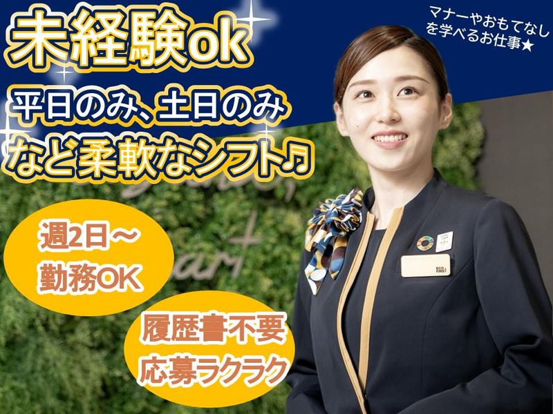 求めている人材 \ 経験・スキル一切不問♪ / ●未経験大歓迎 ●経験不問 ●年齢・学歴不問 ●女性活躍中 \ こんな方を歓迎します! / ◎接遇・サービス・マナーを学びたい ◎新しいことにチャレンジしたい ◎人と接することが好き ◎語学スキルを活かしたい \ こんな経験も活かせます! / ◎飲食業やサービス業での接客 ◎受付 ◎電話応対